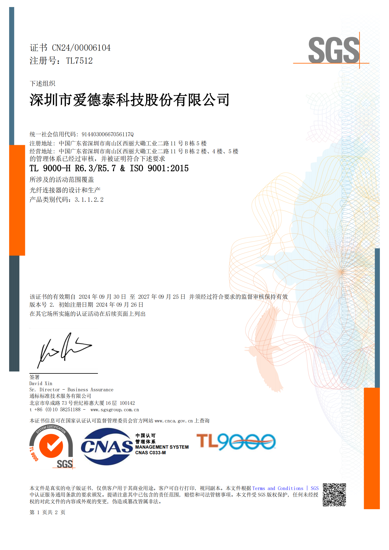 我们通过 TL9000、ISO9001:2015、ISO14001:2015 和 ISO45001:2018 等认证,保持严格的质量标准,同时通过 CE、RoHS、UL/ETL、CPR 和其他认证确保产品可靠性。我们承诺提供卓越的服务和优质的产品。