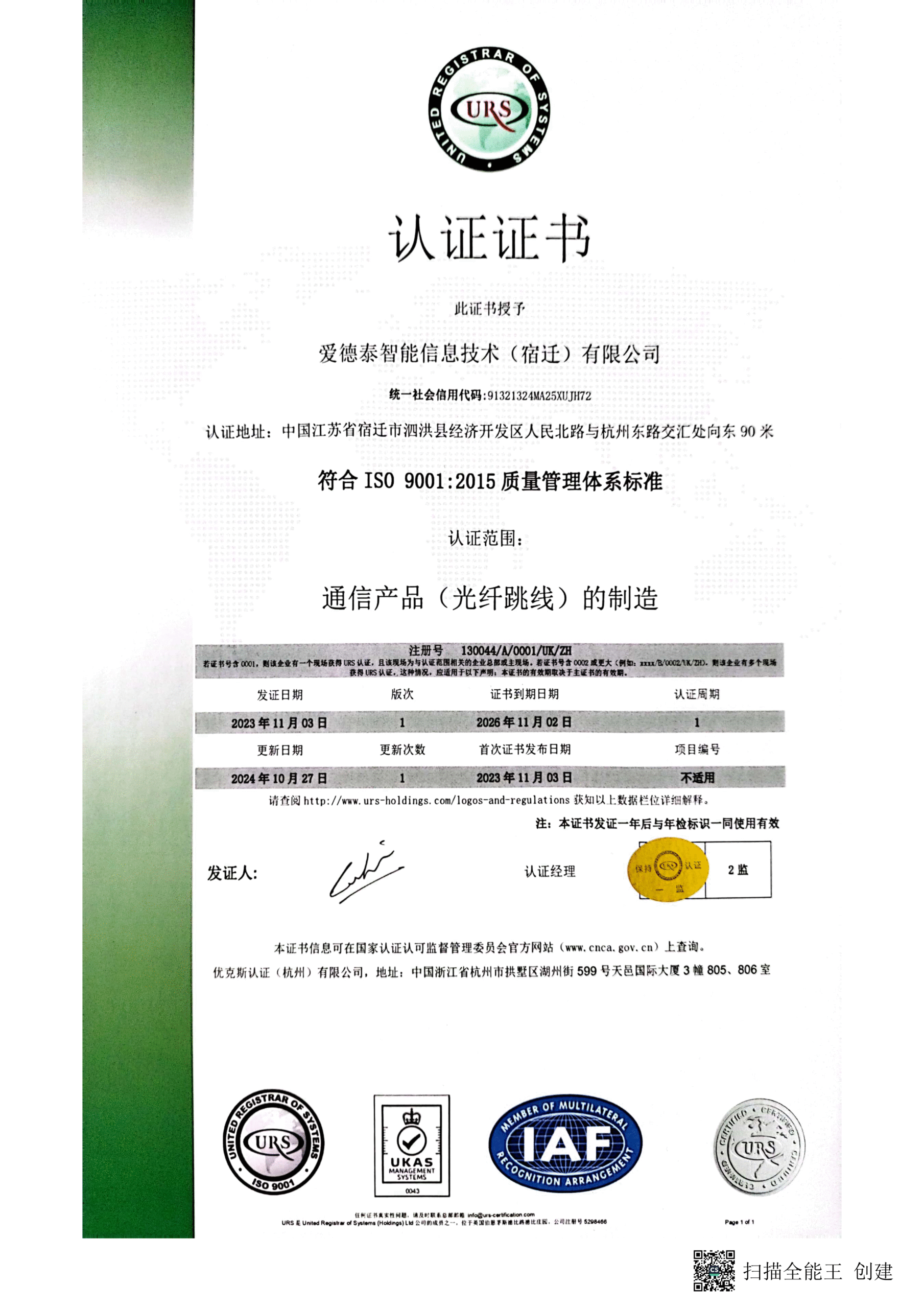 爱德泰完成 ISO9001 等体系认证