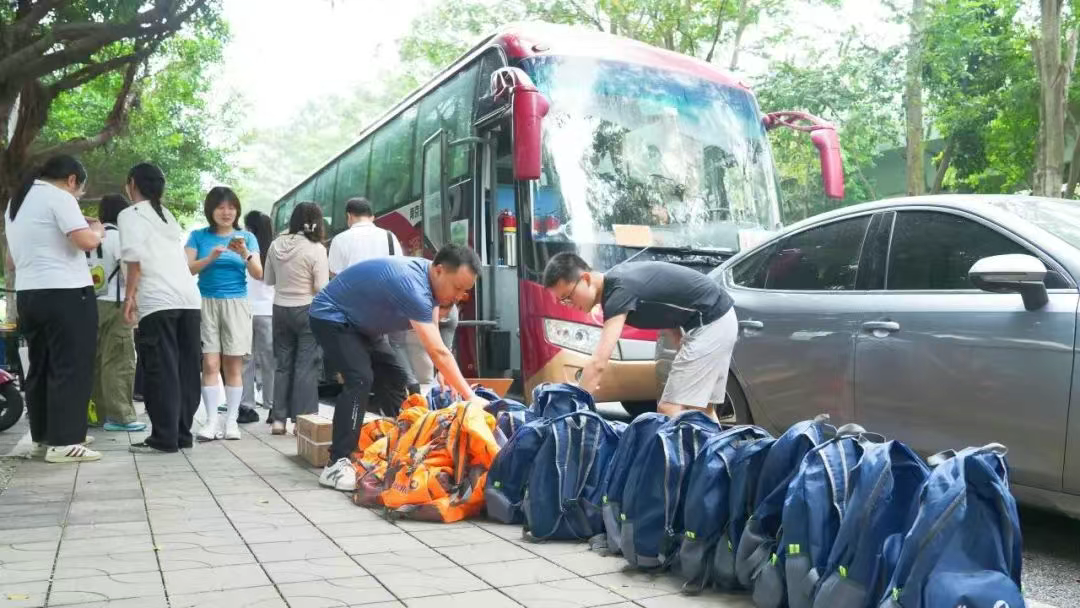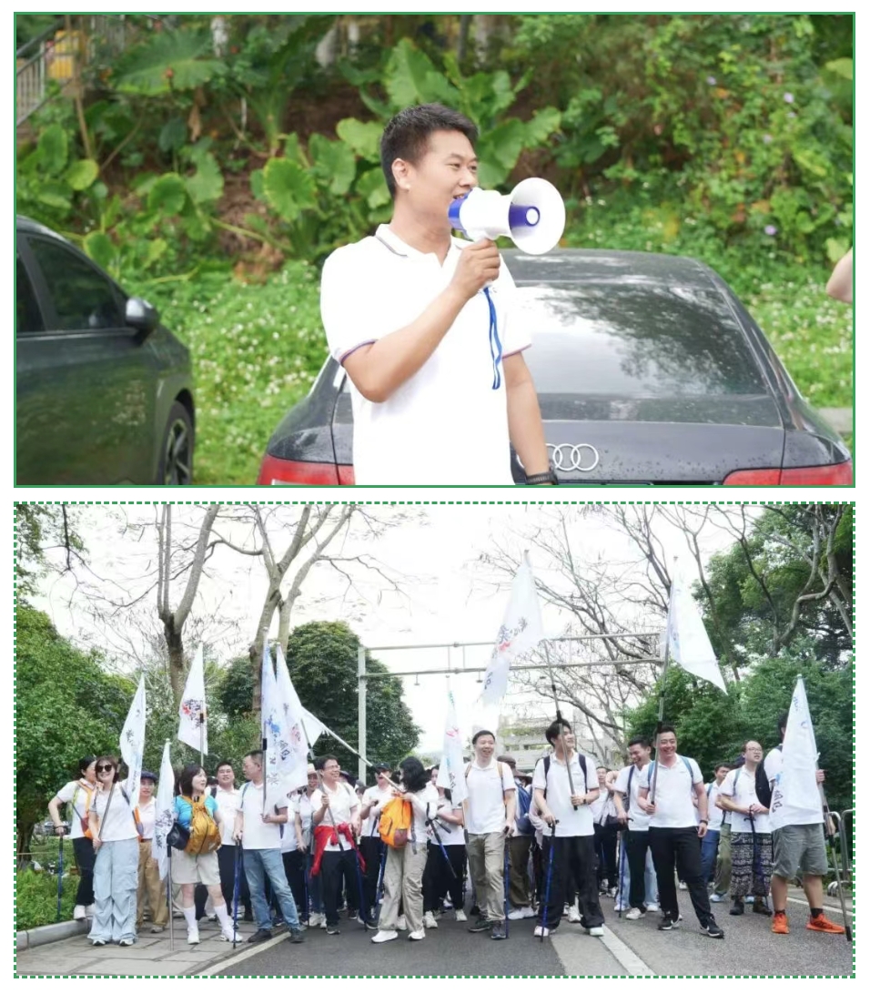 4月19日清晨7:50,爱德泰智园总部全体员工与大磡工厂代表队在董事长John与总经理Helen的带领下,身着统一文化衫,精神抖擞地集结于公司门前。