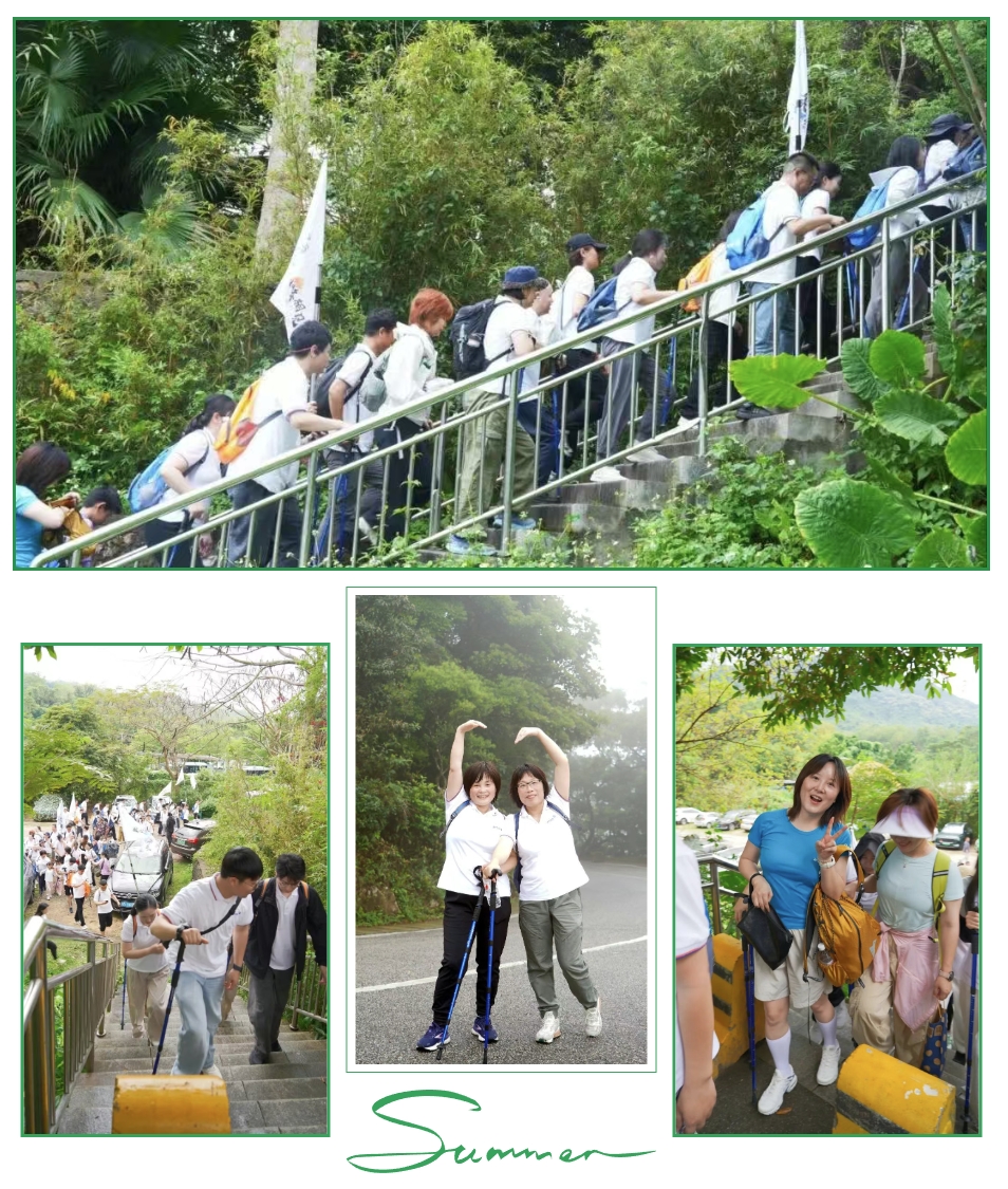 本次登顶梧桐活动将公司成员划分为多个小组,每组配备经验丰富的教练以及组长和助理。面对陡峭的山路与湿滑的石阶,爱德泰人充分发挥了团结友爱的精神,各组成员以“众人拾柴火焰高”的姿态,主动分担物资、搀扶体力稍弱的同事,齐心协力共同前进。