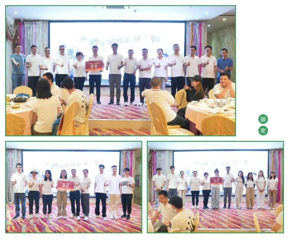 安全下山后,教练带领全员进行系统性拉伸。暮色中,大巴载着疲惫却充盈的团队来到酒店举办庆功宴。晚宴穿插着团队风采照片和视频回顾,颁奖环节高潮迭起,领导们分别为冠亚季军颁发特别定制奖项: