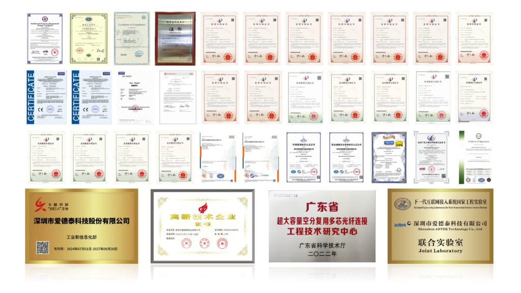 深圳市爱德泰科技股份有限公司成立于2007年,是集研发、生产和销售为一体的国家高新技术企业。公司主营产品有高性能、高精密、高可靠性的光连接器件、组件,光纤管理系统及其解决方案。我们专注于为国内外各大品牌客户提供专业的光纤连接产品,目前业务已拓展至全球多个国家和地区,获得超百项专利证书,获得国家级专精特新重点“小巨人”企业认定,已通过 TL9000、ISO9001:2015、ISO14001:2015 和 ISO45001:2018 等国际认证,同时通过 CE、RoHS、UL/ETL、CPR 和其他认证确保产品可靠性,坚守严格的质量标准。