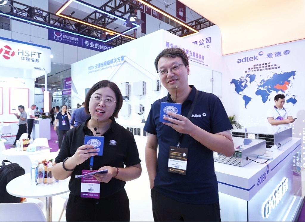 爱德泰在#9A62展位围绕“AI+光连接”主题,重点呈现三大核心解决方案:高密度数据中心解决方案、CPO光联方案,以及ODN与无源光网络解决方案。以前沿的技术创新和卓越的产品品质,我们收获了众多行业客户的高度认可与业内的广泛关注,众多观众驻足交流,与我司技术团队深入互动,共同探索光连接领域的最新技术突破与创新应用。