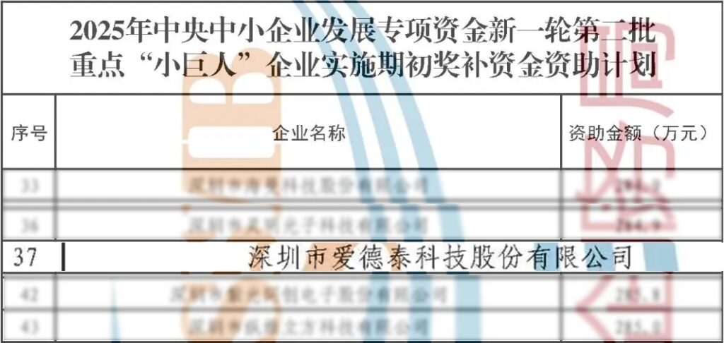 由工业和信息化部从已认定的专精特新“小巨人”中再度择优遴选,主要聚焦重点产业链、工业“六基”领域及战略性新兴产业、未来产业。其遴选以“三新一强”(打造新动能、攻坚新技术、开发新产品、强化产业链配套能力)为核心标准,要求企业在产业关键环节发挥“补短板、锻长板、填空白”的关键作用,助力优化产业链生态配套效能。此次入选,既是对爱德泰的光通信技术实力、细分领域深耕成果及战略定位的充分肯定,也体现出公司在培育新质生产力、增强光通信产业链韧性方面的价值,与国家政策导向高度契合。
