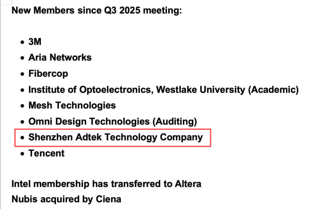 近日,爱德泰正式加入国际权威光连接技术标准组织——光互连论坛(Optical Internetworking Forum,简称OIF),这一举措,是公司迈向全球化技术协作舞台的重要一步。
