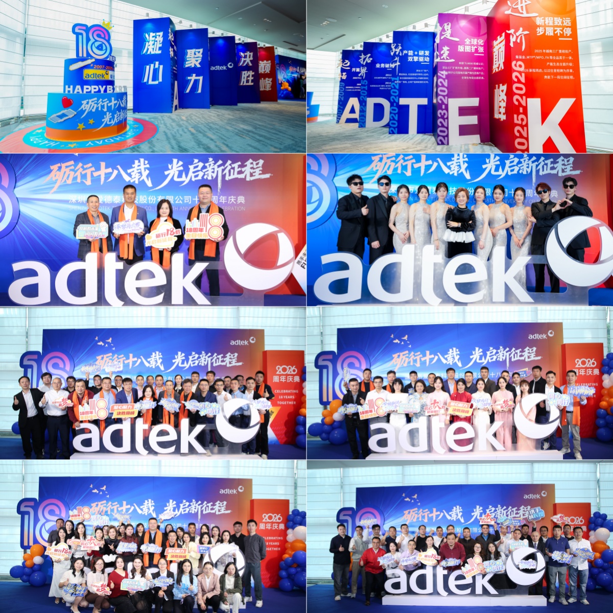 特别环节《向光而行:ADTEK十八年成长路》纪录片,带我们穿越时光长廊——那些熟悉的场景、拼搏的身影、成功的瞬间依次浮现,温暖而澎湃的情感在心中涌动。我们共同走过的路,在此刻被永久定格、铭记。