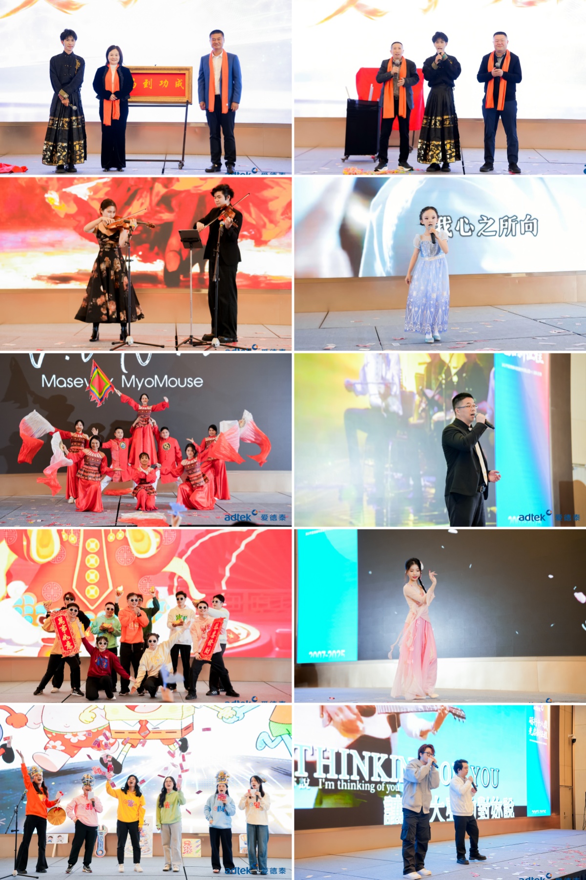 舞台之上,流淌着爱德泰人的才情与热忱。爱德泰人将心声编织成多元的艺术语言:翩跹舞姿演绎活力,悠扬歌声传递祝福;小提琴合奏增添典雅,相声妙语连珠重温征程;奇妙魔术点亮惊喜,更有越南子公司带来的异域风情,奏响文化交融的动人韵律……这些节目串联,都是全体员工献给十八岁公司的深情礼赞。