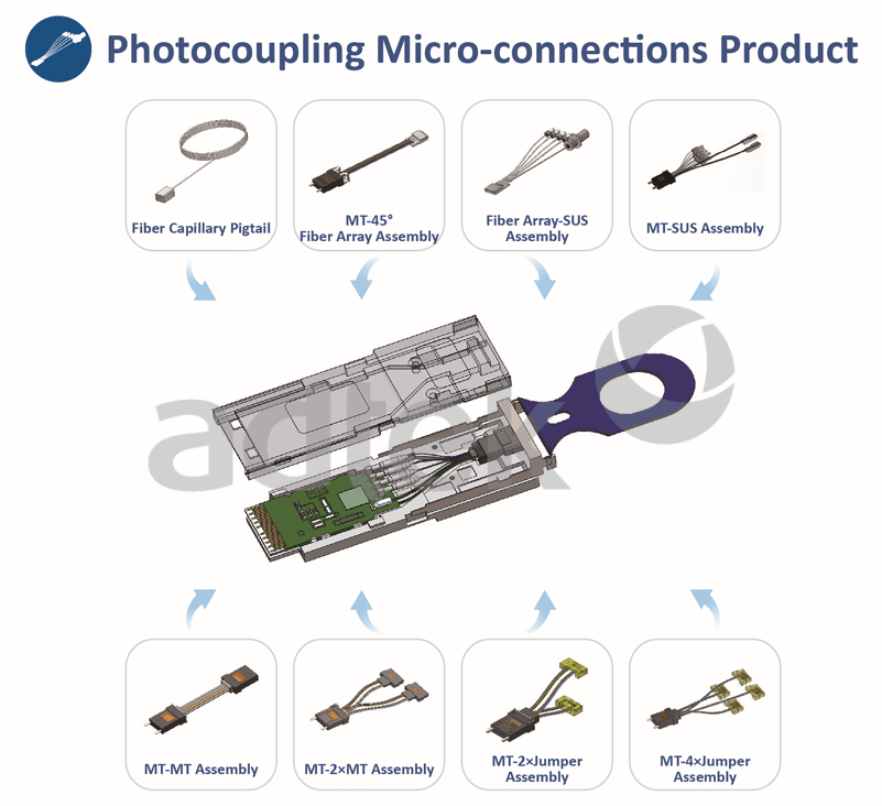 爱德泰光互连产品可应用于光模块内部,包含QSFP, QSFP+, QSFP28, QSFP-DD, OSFP, CXP, CFP, CDFP等多种光模块型号,支持从40G到800G不同传输速率光模块配套的产品方案,支持以太网光网络、Infiniband光网络、光纤通道网络等多种网络产品。