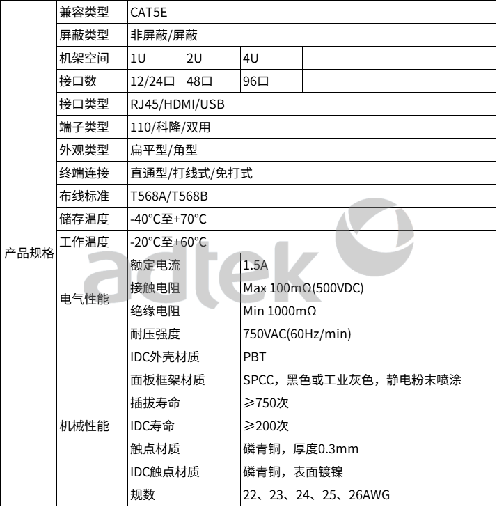 爱德泰ADTEK的提供CAT5E带端子网络配线架适配19英寸机架,非常适合10/100/1000Base-T以太网应用。它有助于集中网络连接,简化输入和输出线路的管理,从而提升网络布线的有序性。