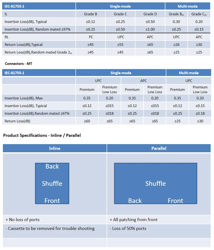 我们支持所有主流行业标准连接器,包括 MPO、MTP、MMC 和 SN-MT。方案提供多样化路由选择,串联部署可采用 “后入前出” 模式,跨机架管理可选用 “左入右出” 并行配置,操作更简便。