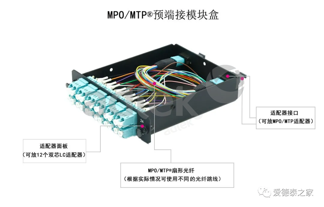 MPO/MTP®模块盒为数据中心布线和40G/100G通信网络互连或交叉连接提供了理想的解决方案。爱德泰可提供多种不同类型的MPO/MTP®预端接模块盒,能够确保网络连接的最佳性能。