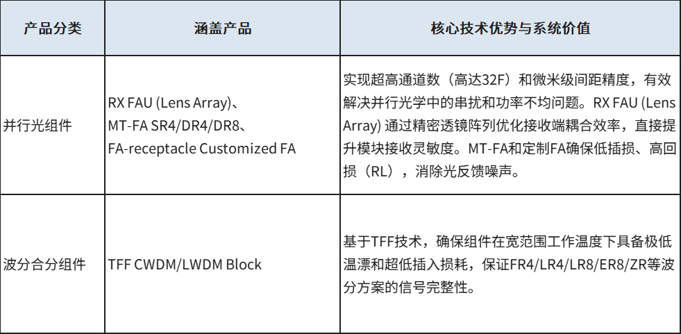 在高速光模块中,有源器件的性能发挥,需要内部无源光器件的协同精度。随着数据速率向400G、800G乃至更高速度迈进,光模块的性能上限已不再单纯依赖于DSP芯片的算力,还受限于内部所有关键光器件的协同集成精度,这对光信号的高效耦合、精准路由、稳定合分波等提出了严苛挑战。